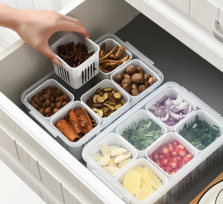 Short Description: Keep your fruits, vegetables, and spices fresh longer with this food drain box, designed with a built-in strainer for optimal freshness.