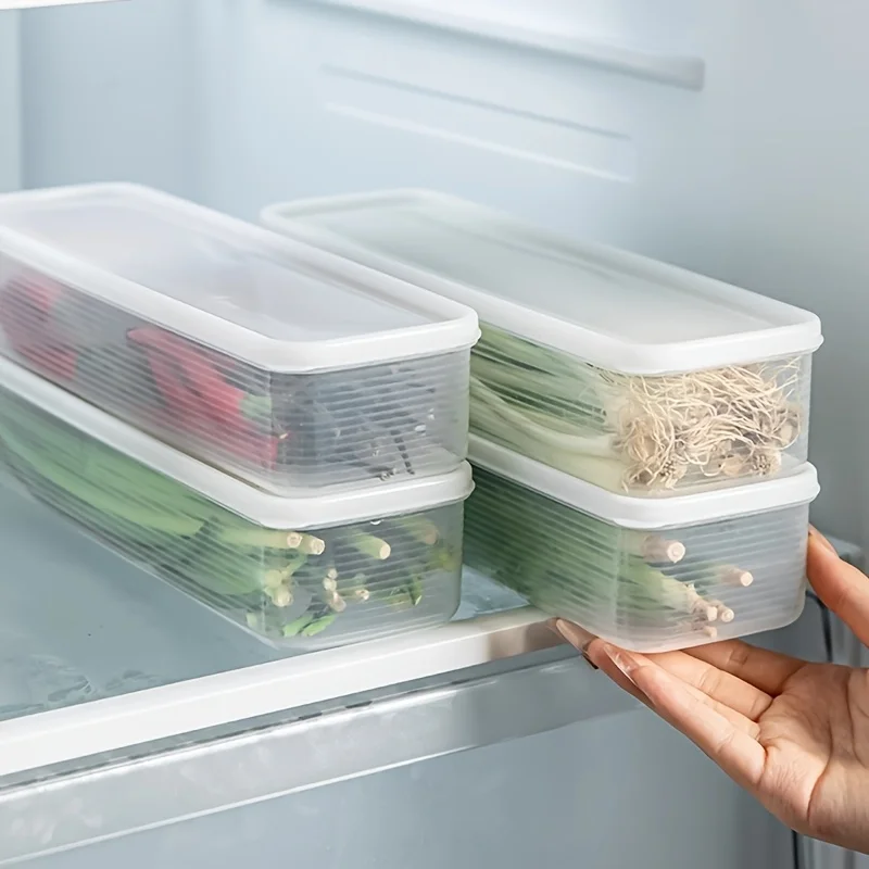 Short Description: Keep your scallions and other fresh produce fresh longer with these sealed refrigerator storage boxes, designed with a lid for optimal freshness.