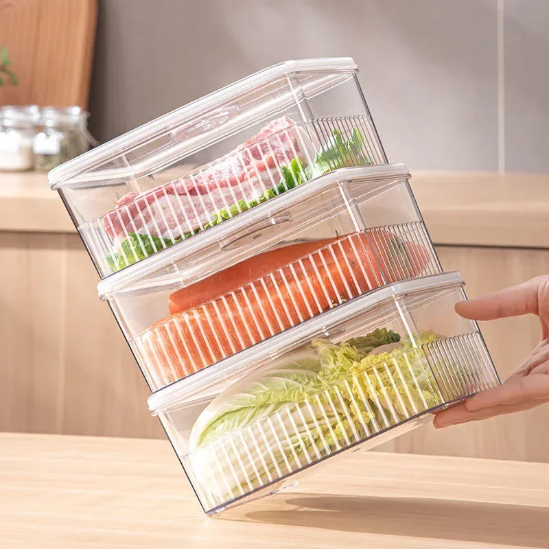 Organize your fridge and keep your produce fresh with the Transparent Fridge Organizer Food Storage Containers — the ultimate solution for fridge organization!