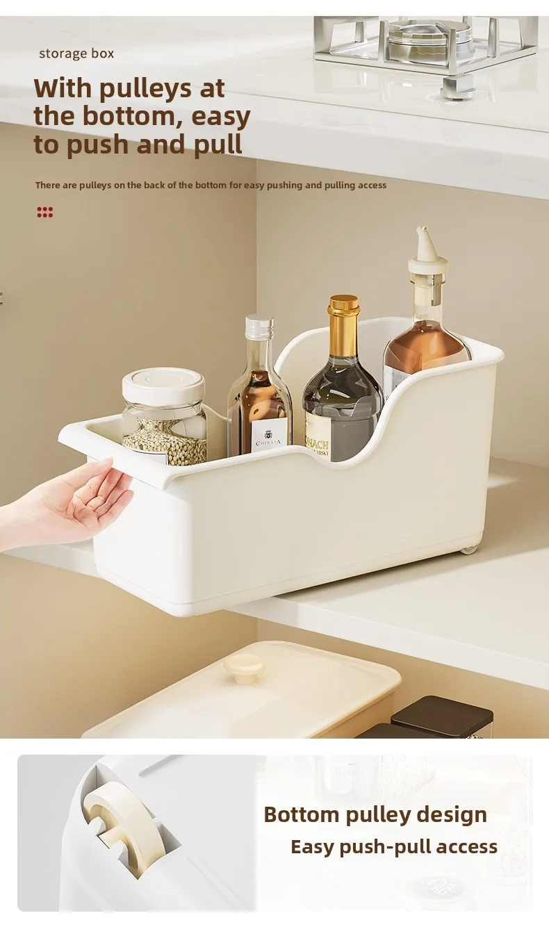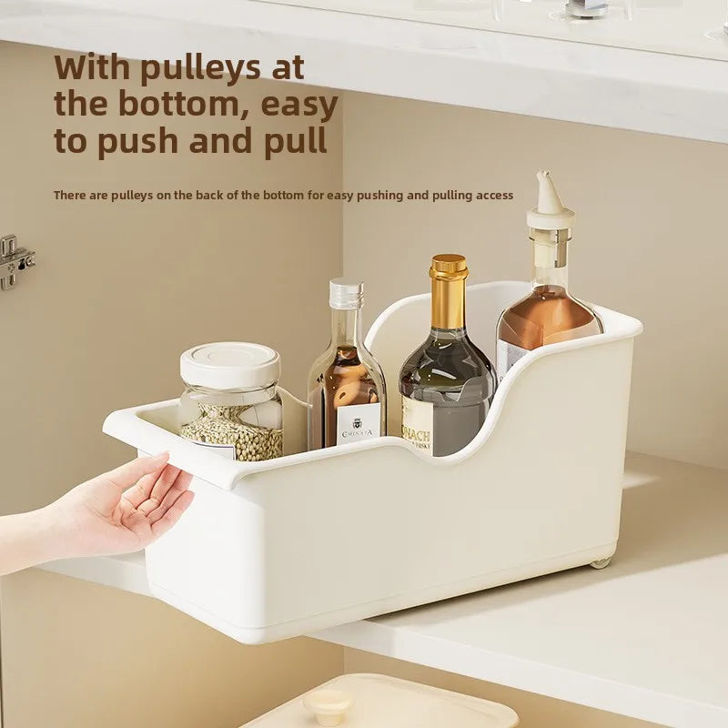 Pull-out design with wheels for easy access to items under the sink or in cabinets