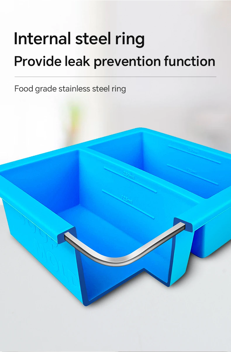 Short Description: Freeze soups and liquids effortlessly with this extra-large silicone mold, featuring a lid for secure storage and easy serving.
