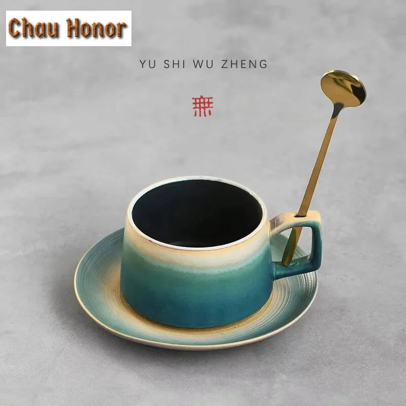 This 260ml boutique forest color ceramic coffee mug, paired with a matching plate, is perfect for your morning coffee or afternoon tea. The elegant design adds a touch of nature-inspired beauty to your tea services and dining decor.