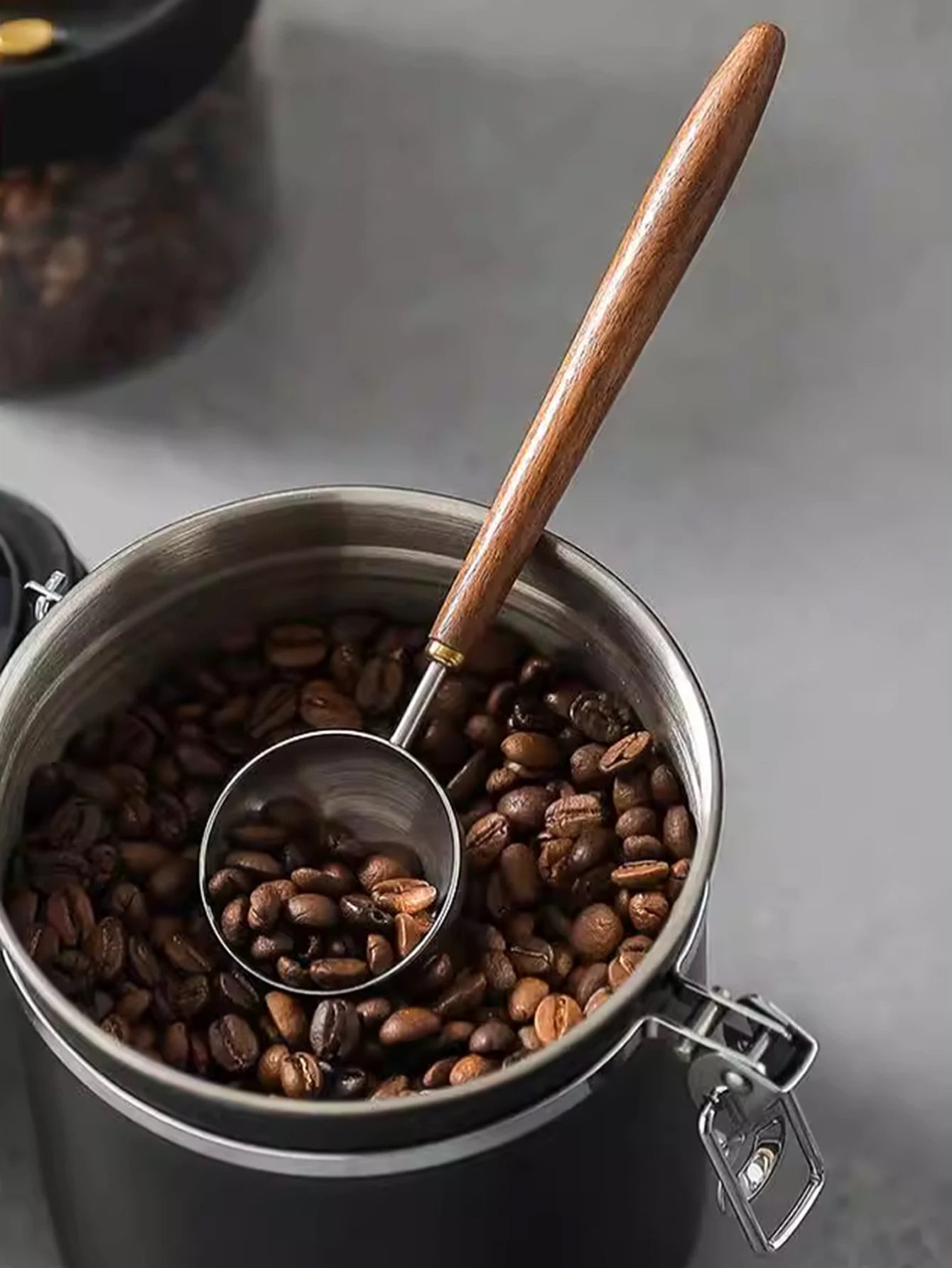 This Coffee Spoon features a vintage walnut wood handle with a stainless steel scoop, perfect for measuring coffee, tea, and seasoning. A stylish and functional addition to your kitchen tools.